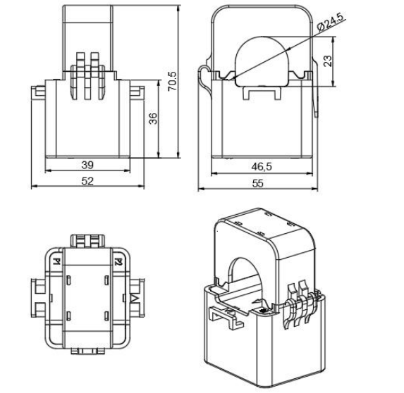 产品外形美观,安装、接线方便,主要用于电力运维及用电改造项目,一般输出为毫安级小电流信号,具有体积小、精度高、带载能力强、安装方便等优点。